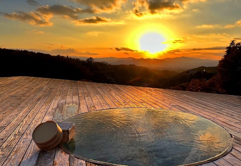 当館から車で3分程度 半露天風呂とバレルサウナ付きのグランピング施設「グランピングスパ・わいた」が2024年1月OPEN! 部屋のプライベートテラスでBBQ源泉かけ流しの半露天風呂部屋の屋上デッキにはバレルサウナ満天の...